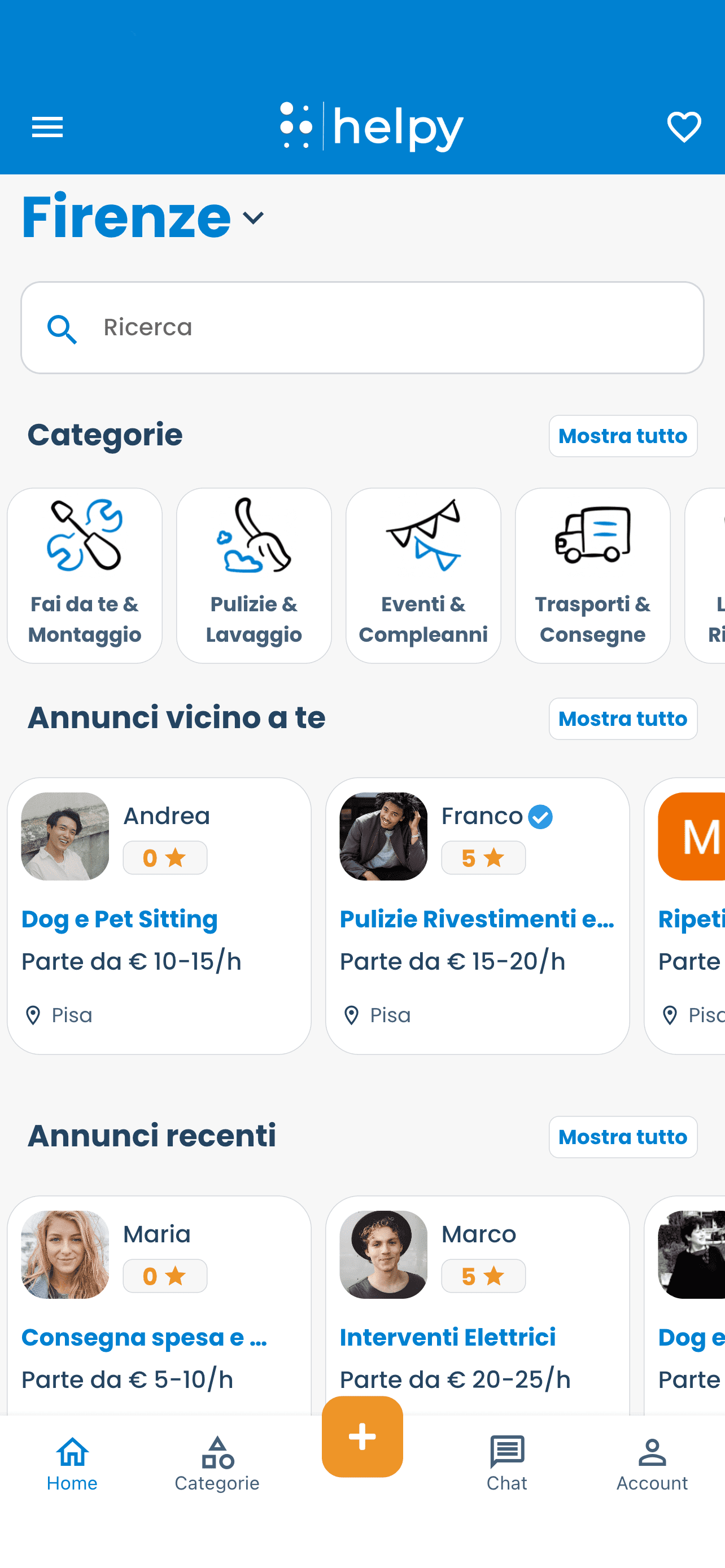 Con Helpy il passaparola diventa digital. Espandi il tuo network! Vendi i tuoi servizi alle persone della community. Trova su Helpy i servizi di cui hai bisogno. Contatta le persone e definisci i tutti i dettagli grazie alla chat di Helpy. Unisciti anche tu alla community di Helpy e incontra nuove persone. Helpy è un progetto nato e sviluppato in Italia, proprio come la pizza! Esatto! Il servizio dell’app è gratuito, così puoi usare Helpy senza pensieri. Fantastisco no? Scarica l’app Helpy e avrai la tua città in tasca! Entra nella community! Helpy è un’ottima scusa per conoscere nuove persone! Cosa stai aspettando? 2 Inserisci i tuoi annunci per tutto ciò che sai fare ed inizia ad aiutare la community! 3 Guadagna grazie a ciò che sai fare!